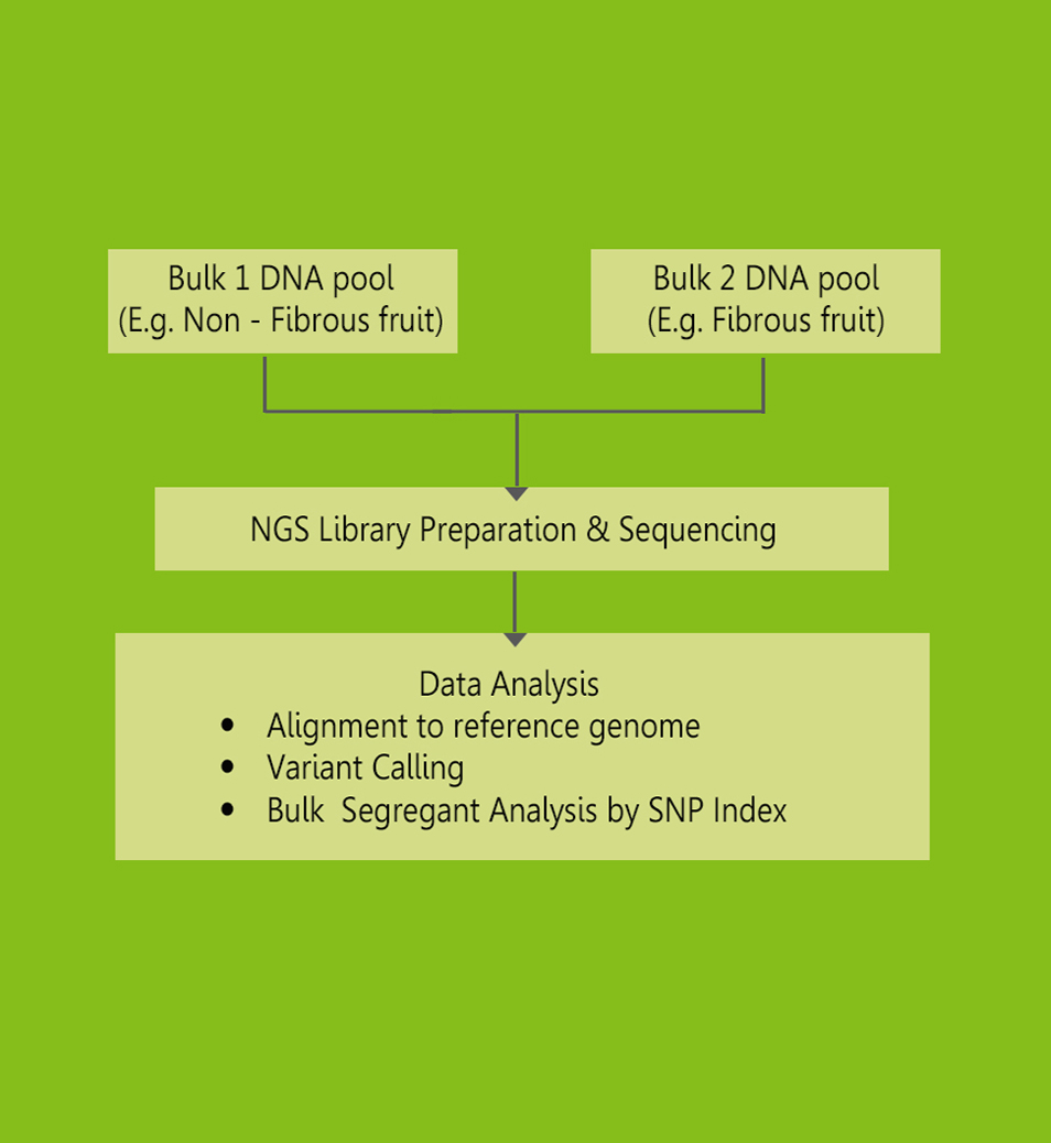 Bulked-segregant analysis (BSA) by NGS is an elegant method to identify DNA markers tightly linked to the causal gene for a given phenotype. Majorly for the agronomically crop and controlled by the QTL.Mapping and isolation of QTLs is important for efficient crop breeding by marker-assisted selection (MAS) and for a better understanding of the molecular mechanisms underlying the traits.